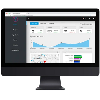 Real-time reports on the served cocktails, consumptions, ingredients levels are always available on your computer or on your Smartphone with the dedicated WebApp.